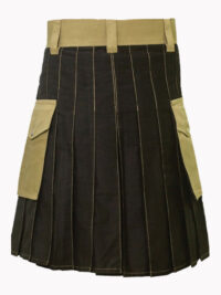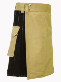 Khaki and Black Hybrid Kilt is a modernized and fantastic design. On both sides of the kilt there are two flap pockets. Now you can order this kilt to look more elegant in your everyday life.